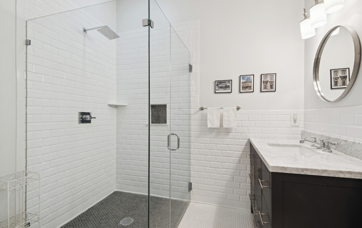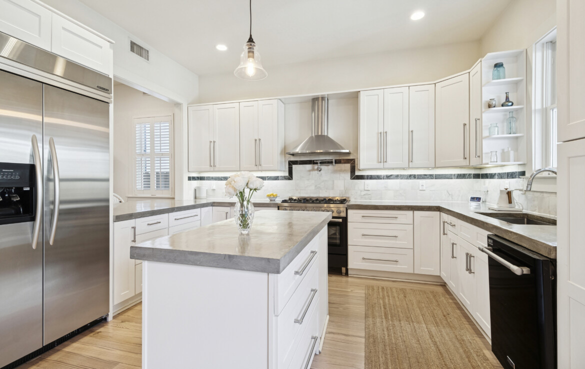 Inside, enjoy stunning pickled heart pine floors, 10ft ceilings, surround sound, and a fabulous kitchen equipped with a 36″ Italian Verona gas range, wine cooler, sleek concrete countertops, and premium finishes throughout. The spacious LUXE primary bathroom boasts marble tile and spa-level comfort.