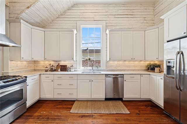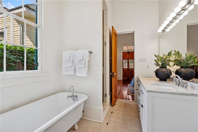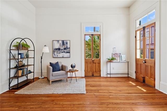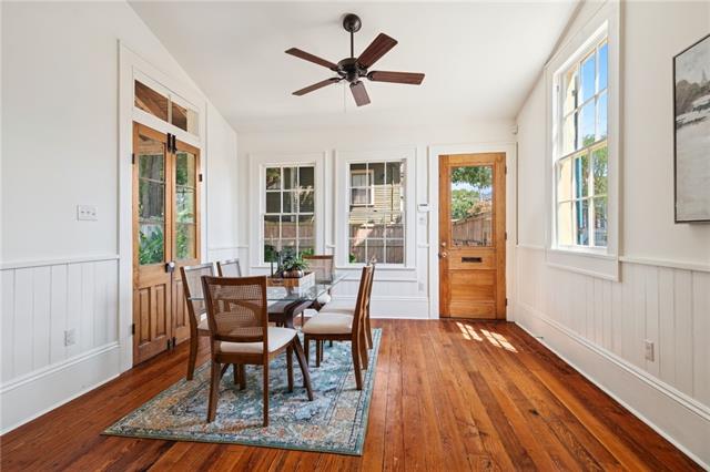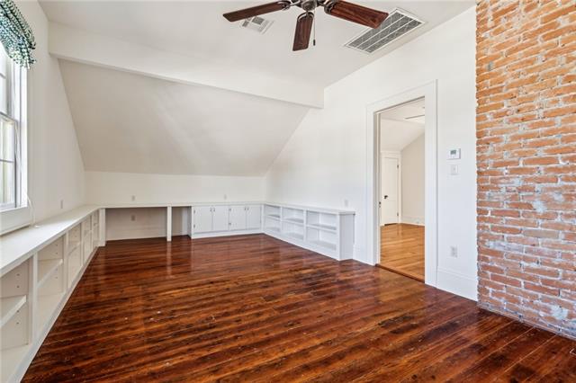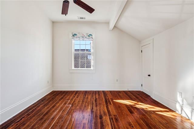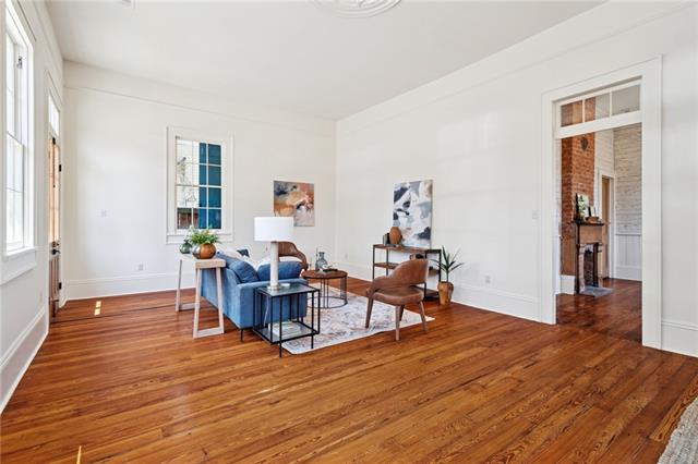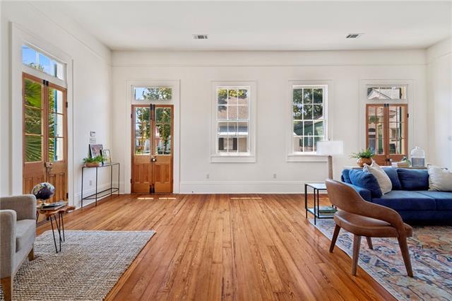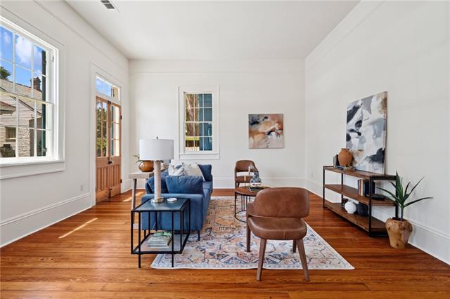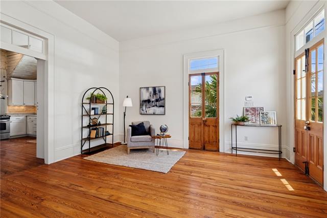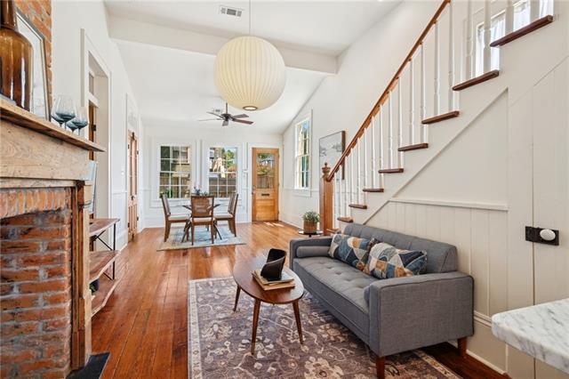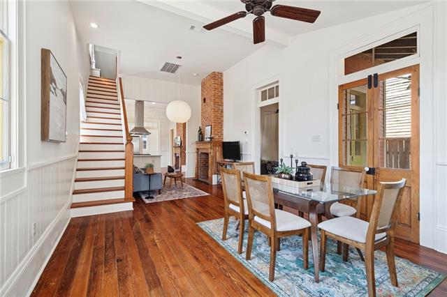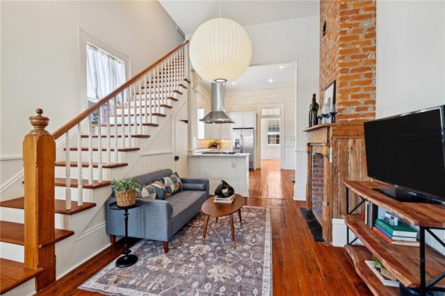 Historic Home on a corner lot in the Bywater, circa 1850’s and fully renovated in 2013, all new wiring, electrical, plumbing, and updated floor plan for modern living. Large primary down, with walk in closet and ensuite bath, large formal room with 12 ft ceilings, lots of windows, and French doors throughout. Historic details intact (wood floors, brick fireplaces, and exposed beams). Functional kitchen with eat in area and additional living space that opens to covered porch and rear yard. 2 bedrooms, and 1 bath up with an upstairs living room with built ins to store the treasures. Walkable neighborhood to many local restaurants, bars, coffee shops and the local library. 3 blocks to St. Claude Avenue, 4 blocks to Markey Park, and 2 blocks to the River, Crescent Park. NEW ROOF 2024- GREAT to help lower homeowners’ insurance. Termite Contract, flood zone X.