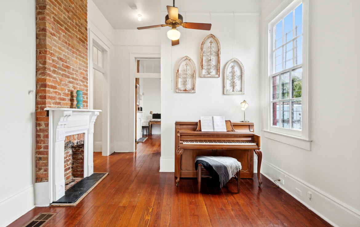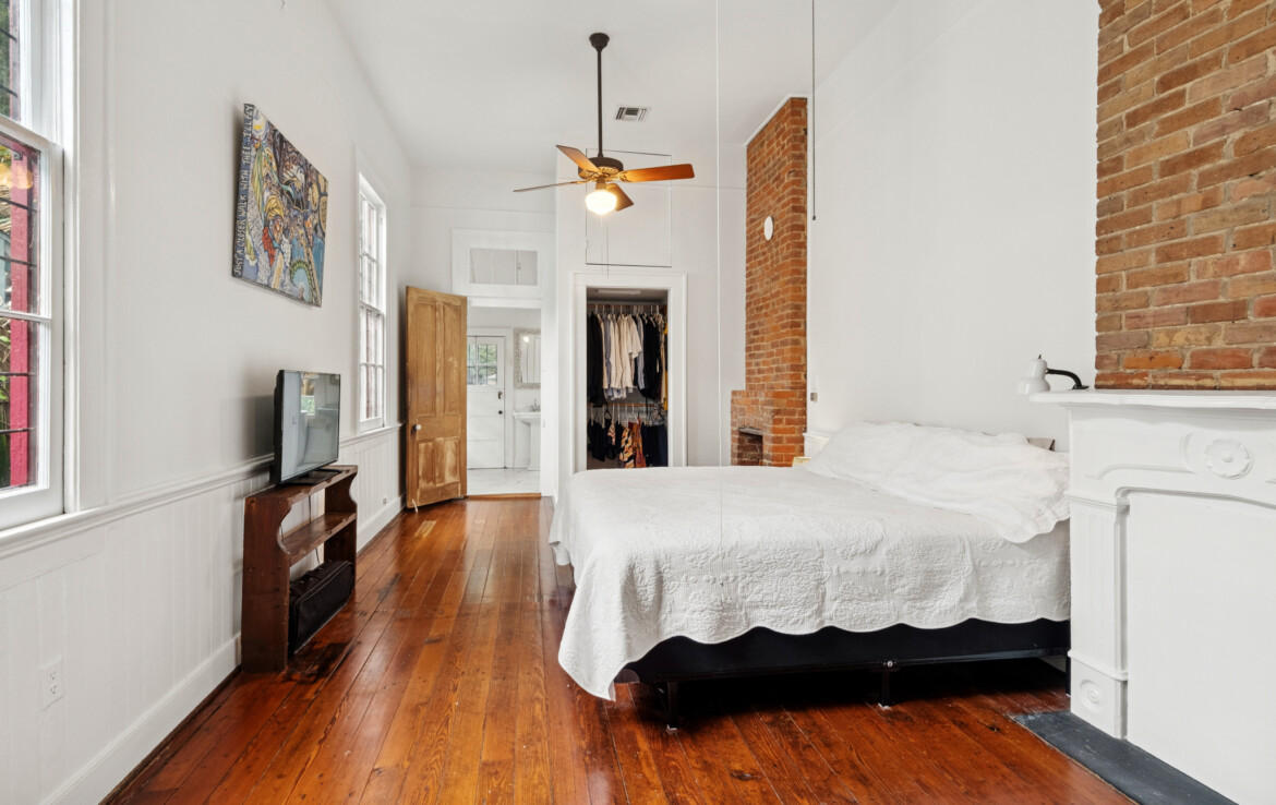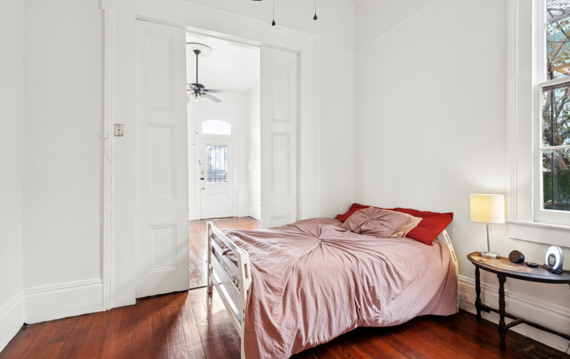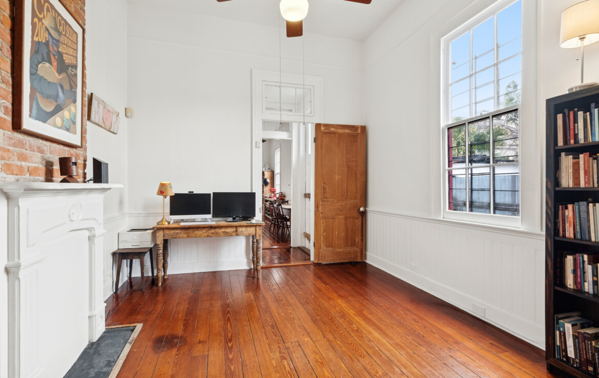 Large historic shotgun in the Marigny Rectangle, walking distance to all the neighborhood amenities: grocery, Co-Op, bookstores, coffee shops, restaurants, bars, parks, and bus/streetcar lines. Home was a double and converted into a single in 2006, it’s an easy conversion back. 12-foot ceilings, large rooms, lots of natural light, front porch, private rear yard with a large outbuilding for storage, or hobbies.